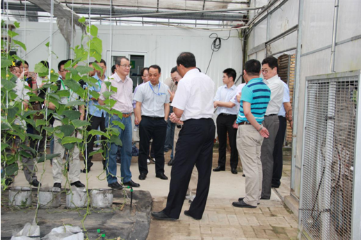 下午,由南京农业大学副校长董维春及校新农村发展研究院办公室主任陈巍带领的南京农业大学专家教授、“钟山新秀”团队一行近60人,来到南农大常熟新农村发展研究院进行观摩交流。常熟研究院常务副院长、研究院公司总经理钱春桃首先带领大家参观了研究院的实验平台,介绍了常熟研究院在学校、地方政府的支持下开展的专业研究、公益性服务、企业服务等,随后带领大家参观了研究院无土栽培及土壤有机化肥减量栽培温室,两个温室是作为农业部、财政部重大农技推广服务试点工作项目的示范点,采用精准化栽培措施“水肥一体化”管理方式。许多“钟山新秀”学者在观摩过程中进行提问,钱春桃对大家的问题进行逐一回答,并提出,希望更多的学者专家为研究院提供技术支撑,将自己的学术科技成果以研究院这个平台进行展示。