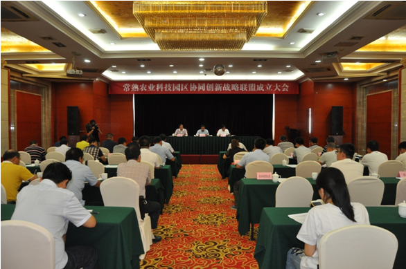 8月22日,常熟农业科技园区协同创新战略联盟成立大会在森林大酒店召开。来自国家农科园、镇(区)板块园区、涉农创新平台、农业科技型企业的首批32家入盟会员单位代表,及市府办、农委、财政局、科技局相关部门代表共41人参加了大会。常熟市政府副市长、常熟国家农科园管委会主任范建国参加会议。