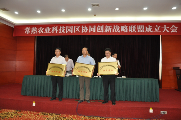 会上,常熟农科园管委会副主任张颂跃代表筹备组介绍了联盟筹建情况。近年来,常熟园区“一核三带多园区”的新定位,各板块园区、农业企业、涉农创新平台等加强协同合作的共同呼声,为建立常熟农业科技园区协同创新战略联盟创造了基础条件。今年初,关于建立“常熟农业科技园区协同创新战略联盟”的方案得到了市委市政府主要领导的批准,由国家农业科技园区牵头成立了联盟筹备小组,着手开展联盟各项筹备工作。根据前期申请审核确认,首批联盟成员为32个,其中各级各类农(渔)业园区15个,农业科技创新合作平台7个,农业科技型企业(包括已认定和未认定的)10个,具有广泛的代表性。