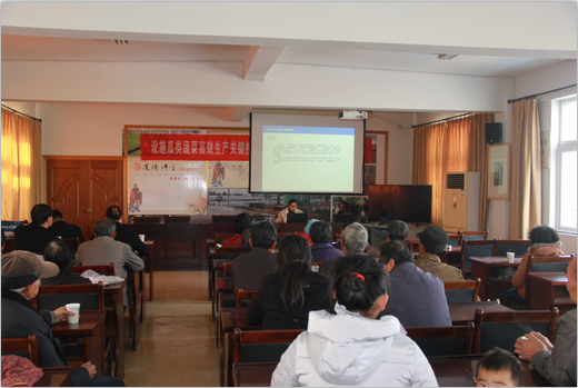 娄丽娜博士讲的主题为春季丝瓜设施育苗及病虫害防治,包括丝瓜新优品种,丝瓜新型栽培技术与模式,丝瓜春季设施育苗要点以及病虫害防治措施等方面内容。刁卫平博士则已黄瓜的春季设施育苗及病虫害防治为主要内容,详细介绍了一些育苗要点以及病虫害药剂的使用方法。会上,有农户当场请教专家生产过程中遇到的实际问题,专家对其进行一对一耐心的指导,并互留联系方式以便会后进行田头指导。会上还发放了物化补贴和各类宣传资料100多份。