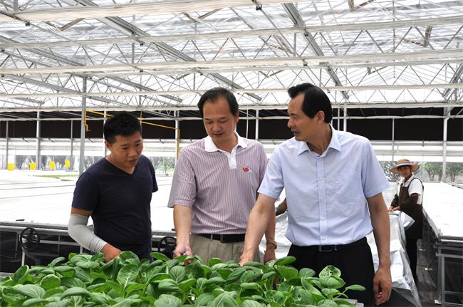蒋来清副市长首先考察了园区的蔬菜园艺创新区,先后参观了叶菜植物工厂、黄瓜袋式基质栽培、番茄岩棉栽培和月季种苗培育四个温室,随后来到园区的水稻育种区,育种专家端木银熙现场介绍了水稻育种的主要品种和成果。