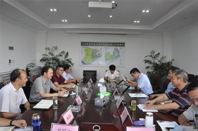 8月28日下午,省农科院蔬菜所王伟明所长、何绍平书记、袁希汉研究员、王述彬研究员、陈龙正研究员和南农大园艺学院陈劲枫教授组成的专家组一行6人来到常熟国家农业科技园区开展考察和指导。