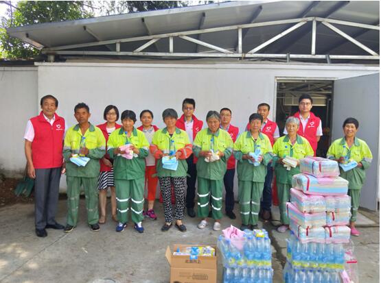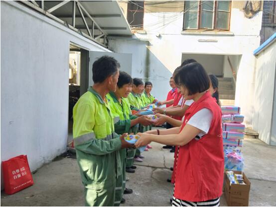 6月21日上午,农科园、农科所联盟支部的党员代表与共建社区常福街道大义社区的部分党员共赴环卫所,对夏日坚守在一线的环卫工人进行了慰问。大家送去了矿泉水、毛巾、香皂等慰问品,希望在炎炎夏日能为这些辛劳的工人们送去一丝清凉。随着酷暑来临,他们涉沟越河、穿街走巷,用辛勤的劳动和汗水为市民营造出干净、整洁、舒适的工作生活环境。他们的工作值得我们尊敬,他们不怕苦不怕累的精神更值得我们学习。