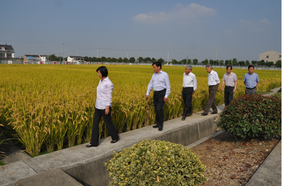 秦卫星主任一行到达园区后,首先由农科所水稻育种专家端木银熙老师带领,参观了园区水稻试验田和制种田,端木老师向人大一行领导介绍了各个水稻品种的性状和试验推广情况。