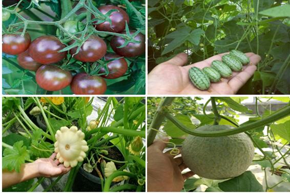 近日,园区蔬菜园艺创新区大棚内引进示范的蔬果新品种进入成熟期。今年引种的新品南瓜都是第一年引种示范,有飞碟瓜、清香玉、碧玉、旭日等;甜瓜类有来自省农科院的网纹红珍珠、珍珠,原产台湾的“3800”,以及国外新品阿鲁斯和比美等;番茄新品有荣耀、黑樱桃、绿贝贝、黑妃等也都挂了果,色彩多样,惹人喜爱。在蔬果成熟期内,园区还将面向公众举办自助采摘、农业科普、休闲参观等活动,探索农旅结合发展新模式。