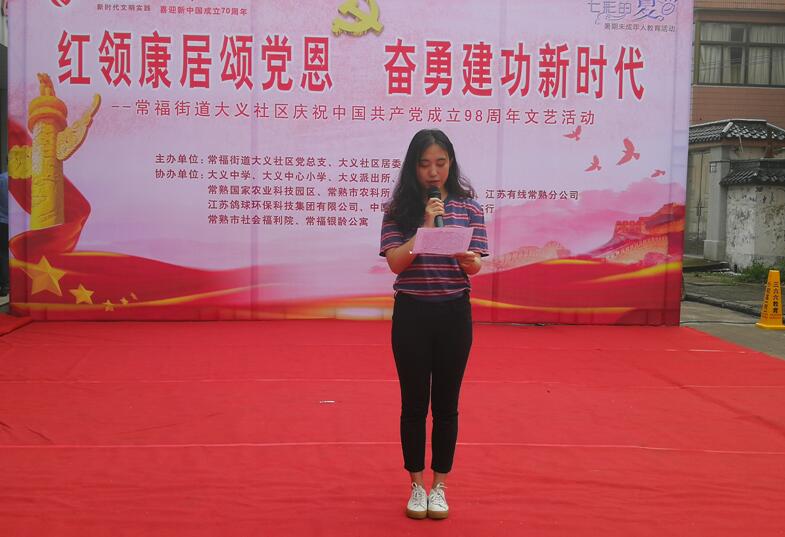 为了纪念中国共产党成立98周年,进一步发挥党建联盟作用,提升党组织共建水平,6月27日上午,农科所、农科园联盟支部参加常福街道大义社区举办的庆祝中国共产党成立98周年文艺汇演。
