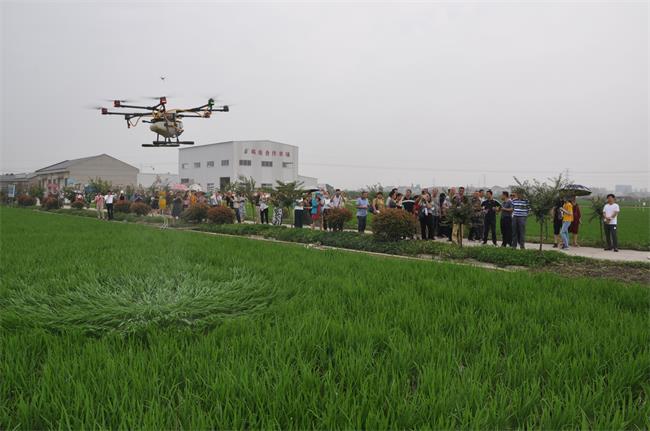 董明辉带领大家首先来到村合作农场粮食烘干库房,向大家介绍了烘干设备的基本情况、运作的容量以及对附近农户辐射的情况。紧接着,在烘干库房外的场地上整齐停放着水稻播种常用的几类农机,董明辉向大家简单介绍农机后,重点介绍了两台无人机:一台用于监测田间农情,可将稻田温度湿度等实时数据即刻反馈到管理员;另一台用于喷洒农药,与传统打药方式相比,无人机的效率大大提高,操作也很便捷,熟练的操作员一天就能喷药500亩。
