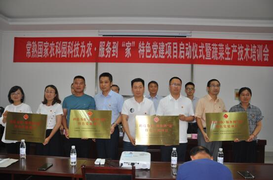 6月23日,农科园“科技为农,服务到‘家’”特色党建项目启动仪式于梅李高效设施蔬菜产业园区举行。市委党建办副主任、组织部组织科科长周赟,市科技局副局长王天,市农业农村局主任科员陆正清等领导出席。此外,园区管委会班子领导、党支部支委会全体成员、园区科技特派员以及梅李高效设施蔬菜产业园区蔬菜种植户共计50余人参加了启动仪式。