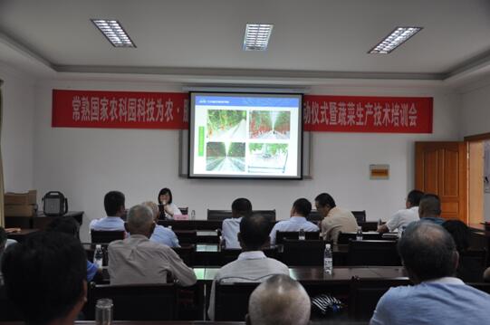 启动仪式后,由科技特派员宋立晓为梅李高效设施蔬菜产业园区广大蔬菜种植户进行了蔬菜生产技术培训。通过案例分析、现场观摩等形式,特派员专家与农户们进行了有效互动,切实提高了服务实效。