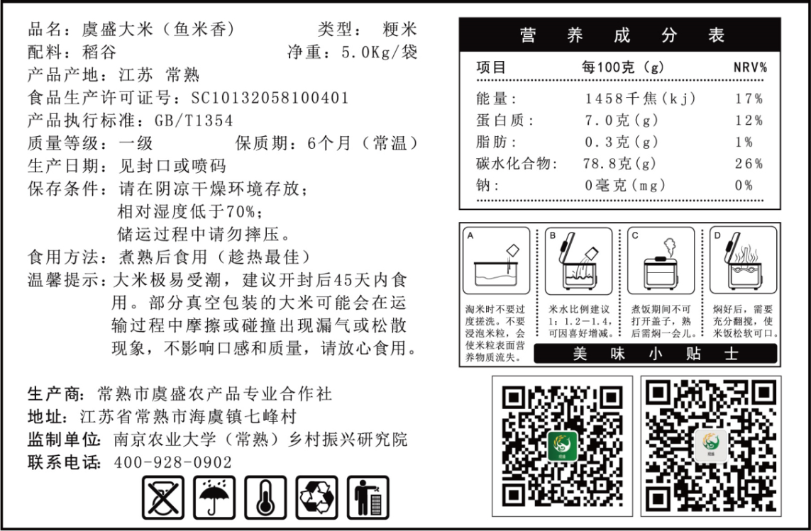 虞盛合作社作为国家级农民合作社示范社、江苏省绿色食品协会会员单位、常熟市级农业产业化龙头企业,已成为常熟市中小学食堂大米定点配送单位之一。