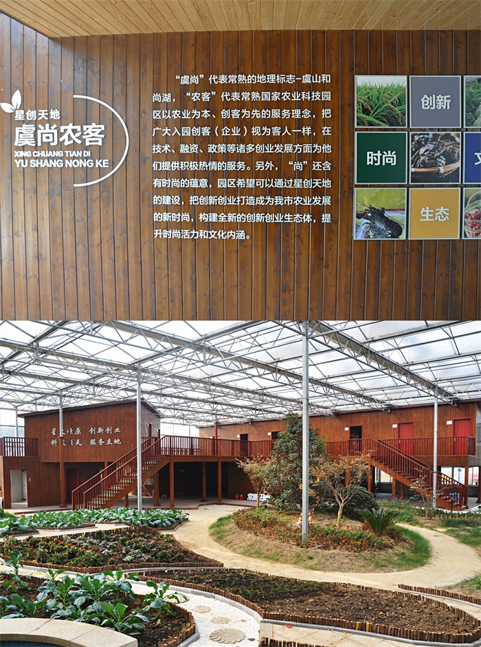 虞尚农客建设面积2000平方米,其中1200平方米为创新资源集聚区,包括引入的创新平台的日常办公场地和共享办公空间。600平方米为创新成果试验展示区及200平方米的检验检测平台基地。虞尚农客集聚全市15个农业科技创新平台,建立基础设施共享、创新资源互通、创新成果集成的协同创新机制。接下来虞尚农客将打造一个集聚创业人才、技术集成示范、创业培育孵化、创业人才培训、科技全要素服务为一体的一站式综合性农业科技创新创业支撑平台,打造一个能够有效支撑常熟设施园艺产业创新创业主体快速成长、设施园艺产业创新创业载体服务功能提升、农业产业的创新发展和转型升级,有效推进以一二三产业融合发展,有效促进常熟农业农村经济社会快速健康发展的,具有苏南设施园艺产业创新创业代表性的农业科技创新核心区。