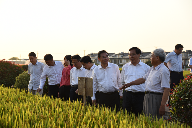 随后唐明珍一行来到园区农科所水稻新品种选育区,实地查看了常农粳系列和常优系列水稻新品种的长势情况,听取了端木银熙研究员对相关水稻新品种的特征特性和推广情况的介绍。唐明珍对常熟农科所水稻育种工作给予了充分肯定,并提出三点要求:一是在选育品种的类型上适当增加中粳类,把常熟的新品种推广种植到苏北;二是要加强和其他科研院所的合作,进一步提升杂交育种水平;三是科技成果转化力度要加大,方式要灵活,要让更多的好品种转化为现实生产力。