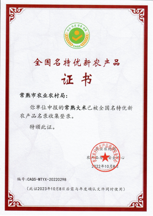 常熟地区年平均气温17.6℃,年日照超1800小时,无霜期248天,土壤富含多种矿物质,这些都保证了“常熟大米”的天然清香、口感细腻软糯的优良品质。常熟自主育成的“常农粳、常优、常香粳”等系列水稻品种累计推广种植近7000万亩,增产粮食20.6亿公斤,增加社会经济效益约30亿元 ,为国家的粮食安全、农业增效、农民增收提供了有力支撑。