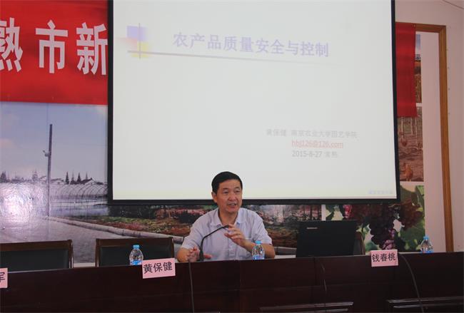 根据《2015年省级农民培训工程实施指导意见》要求,坚持全面推进适应常熟市现代农业产业需求的新型职业农民培训,进一步提高农民的农产品安全意识、转变农民农产品,2015年8月27日,南京农业大学常熟新农村发展研究院(以下简称南农大研究院)在董浜镇农服中心的协作下举办了“常熟市新型职业农民专场培训会”,会议由农服中心主任杜建军主持。由南京农业大学园艺学院教授黄保健、副教授钱春桃对本次培训进行专场授课,北港村、里睦村、东盾村的种植示范户及各村农业条线干部、致富能手等近百余人参加授课。