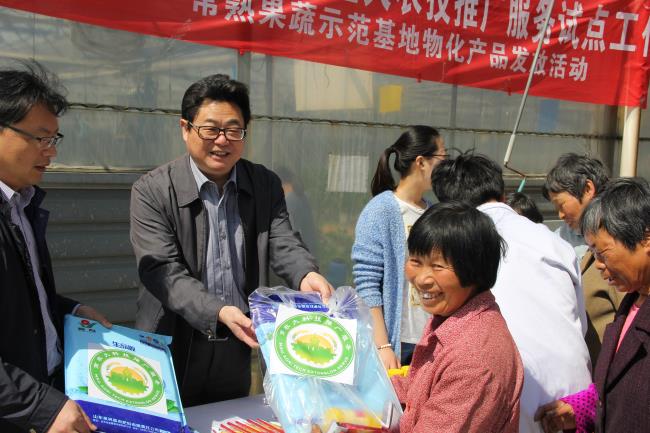 会议结束后,陈巍主任、陆益主任等还一同将物化补贴产品分发到23位农户手中。