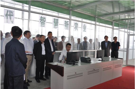 与会人员重点参观了园区智慧农业-温室物联网系统控制中心、智能化环境控制甜瓜温室和草莓温室,听取了相关介绍并观看了现场操作演示,与会人员充分肯定了园区在引领示范智慧农业发展方面的作用。2017年,园区对蔬菜园艺创新区近3万平米文洛式玻璃温室实施了智能化改造,总投资达100万元,包括1个室外气象站、1个点阵式LED显示屏、4台球型摄像机、13种室内环境传感器和15台定焦摄像机,该系统以先进的无线传感器、物联网、云平台、大数据以及互联网等信息技术为基础,利用传感器来监控大棚内的温度、湿度、光照和土壤湿度、土壤温度、CO2浓度等影响农作物生长的环境参数,通过计算机系统智能化分析并远程控制大棚内的水阀、加热、滴管、喷灌等设备,从而确保农作物能够在最佳的状态下进行生长。各级用户通过Web、PC与移动客户端可以访问数据与系统管理功能,对每个监测点的作物生长情况、空气温度、空气湿度、土壤温度、光照强度等作物生长过程中重要的参数进行实时监测、管理。可有效节约劳动用工30%左右,生产效益提升10%以上。