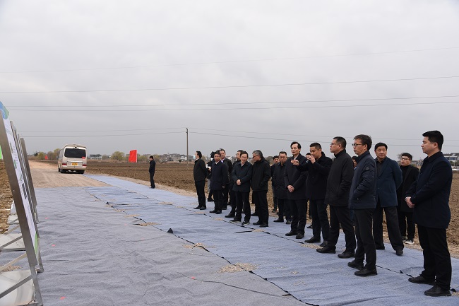 在工程项目现场,江苏常熟国家农业科技园区管理办公室副主任王文青介绍了江苏省常熟市现代农业产业示范园东联村高标准农田改造提升示范区项目的总体概况、工程内容、工程进度等情况,突出从“标准化、机械化、生态化、智能化”四个方面,统筹生产、生态、生活,全力打造“配套全、效益高、生态优、环境美”的现代农业高质量发展示范区。与会人员仔细听取了汇报并结合工程现场实地情况展开交流讨论。