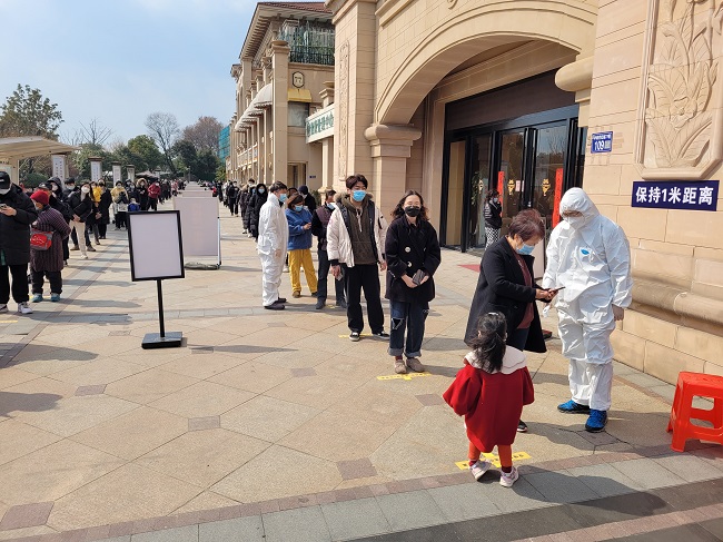 一折不扣,筑牢防疫防线。在执行防疫任务过程中,支部志愿者们根据上级组织的统一安排,下沉指定社区,从摸排居民信息到布置采样点,从秩序维护到信息登记……截止目前,常熟市开展的3轮区域核酸检测现场,都有志愿者们忙碌的身影,他们化身“大白”与“小蓝”,顶着寒风,迎着细雨,从午夜到黄昏,并肩奋斗,各尽其责,连续数日奋战在社区抗疫一线。春寒料峭,乍暖还寒,但初心不改、使命不移,大家用坚定的意志和决心共同筑起一道安全防线。