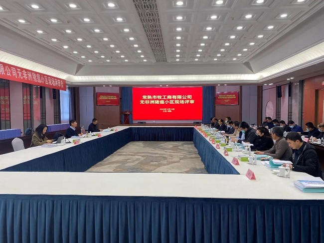 2022年12月13日,国家评估专家组对常熟市牧工商有限公司无非洲猪瘟小区进行现场评审。评估专家组本着科学规范、系统全面、客观公正的原则,采取听取汇报、查阅资料、现场查看、视频连线、交流讨论、质疑答疑等方式,根据《无规定动物疫病小区现场评审要素判定原则》,从企业生物安全管理体系运行情况、畜禽标识追溯体系运行情况、非洲猪瘟监测情况,到畜牧兽医部门对非洲猪瘟及其他动物疫病的监测、检疫、监管情况等各方面进行了认真评审。通过全面的综合评估,专家组一致认为常熟市牧工商有限公司达到了无非洲猪瘟小区的建设标准,给出“建议通过”评估意见。常熟市牧工商有限公司成为全省第四家、苏南地区第一家无非洲猪瘟小区。