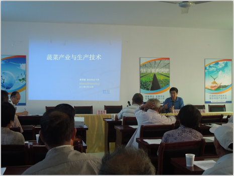 为了进一步提高种植户的种植水平,实现土地增收、农民增效的目的,2014年9月16日,由常熟市科技局主办,南京农业大学常熟新农村发展研究院(以下简称南农大研究院)和董浜镇农业技术服务中心承办,《常熟市科技360服务行动 — 设施蔬菜专场培训会》在里睦村顺利举行。培训会由董浜镇王志丰主任主持,常熟市科技局朱立新副局长、农村与社会发展科科长花雪东等领导出席。在培训会上,南京农业大学园艺学院黄保健教授主讲《蔬菜产业和生产技术》,钱春桃副教授介绍了《常熟东圣宝液体肥的应用情况》。参加培训的有蔬菜技术协会党支部全体人员、里睦村、北港村农业条线干部、党员致富能手、种植大户,共计64人。