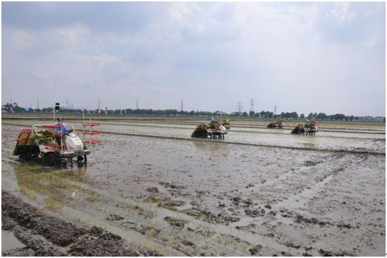 在园区“一中心、二园区、多基地”的示范带动和国家农机购置补贴优惠政策的持续推动下,今年常熟农业装备水平继续稳步提升。截止11月15日,今年全市共有421户农机户新增各类农机具925台,其中乘坐式高速插秧机247台、大中型拖拉机60台、粮食烘干机19台、微孔曝气增氧机184台,农业装备总投入近3800万元。全市累计各类农机具保有量超过10000台套,其中重点机具:稻麦联合收割机748台,乘坐式高速插秧机824台,大中型拖拉机1095台。农业综合机械化率超过90%。