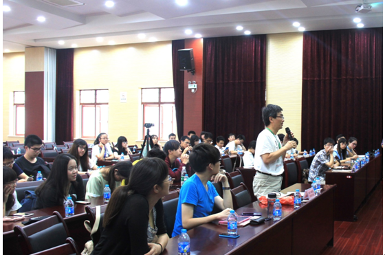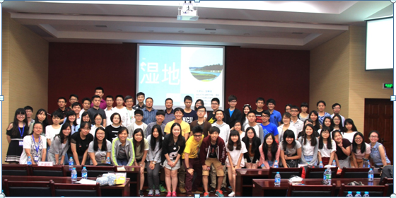 2015年7月18日上午,参加“两岸三地绿色大学联盟环保夏令营”的50余位大陆及港台师生,来到常熟考察学习。应“两岸三地绿色大学联盟”邀请,南京大学常熟生态研究院院长、南京大学生命科学院教授安树青为大家讲授题为《湿地保护与治理》的绿色讲座。讲座由南京大学常熟生态研究院周恺伦主持,南京大学常熟生态研究院的全体工作人员聆听了讲座。