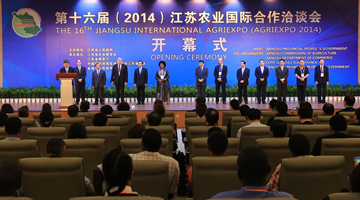 9月26日上午,第十六届(2014)江苏农业国际合作洽谈会在盐城开幕,农业部副部长牛盾致辞,省委常委、副省长徐鸣宣布开幕,省农委主任吴沛良主持开幕式。